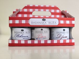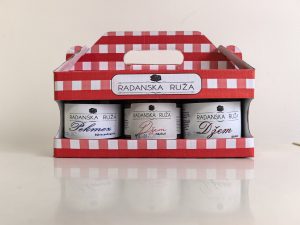 Sadržaj paketića su tri teglice od po 220 gr, ručno radjenih džemova od; kajsije, šljive i kupine, iz našeg asortimana.